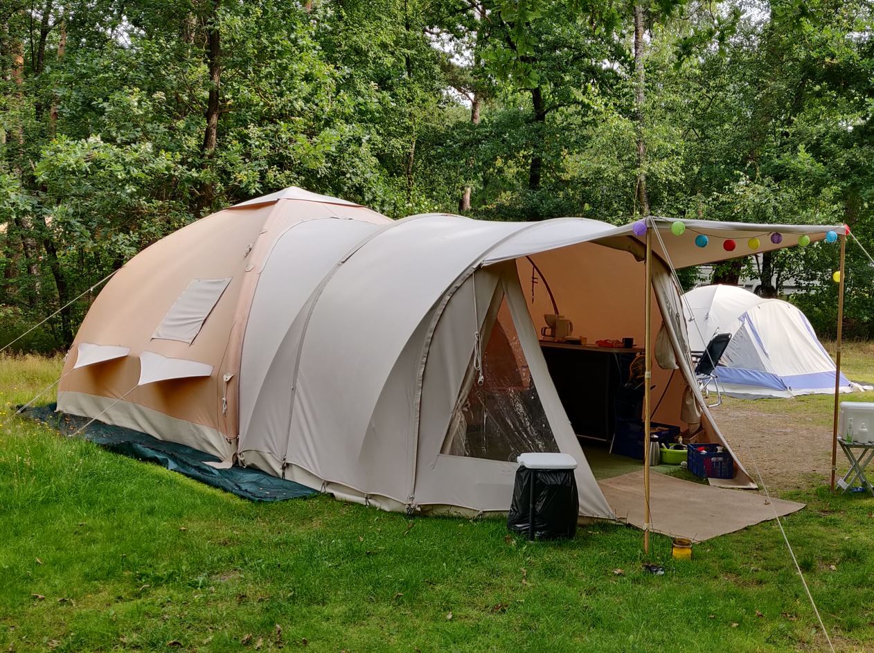 "Om extra ruimte te creëren is het mogelijk om tussen de boogluifel en de voorwand een tussenluifel van 1.50 cm diep te ritsen. Hierdoor wordt de leefruimte aanzienlijk vergroot. Naar wens kunnen er ook ramen in worden aangebracht."